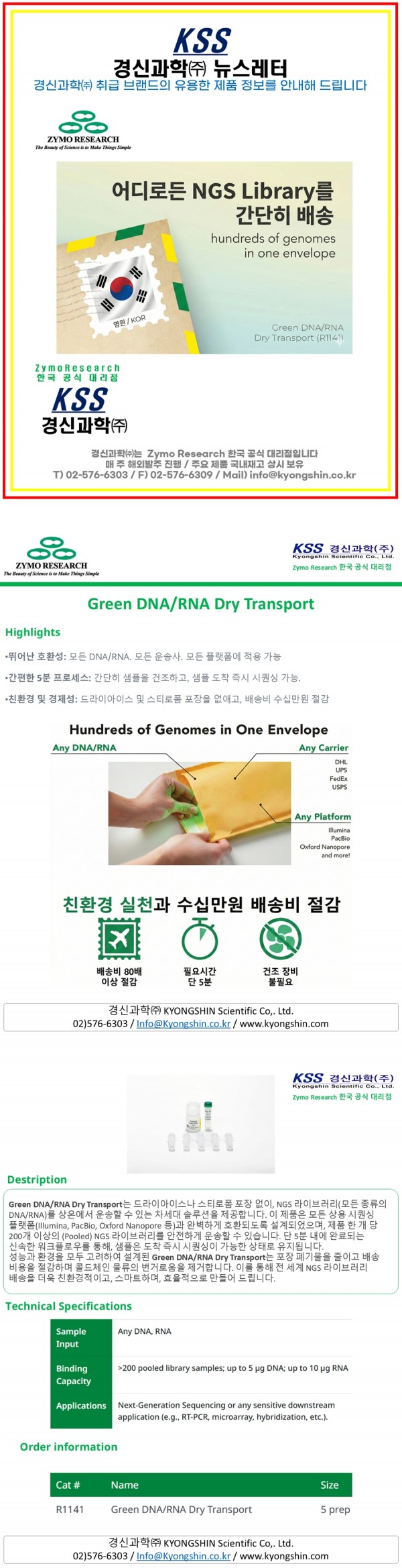 #경신과학 #KSS #ZymoResearch #Zymo #GreenDNARNADryTransport #R1141 #NoColdchain #NoSpecialEquipment #Just5Min